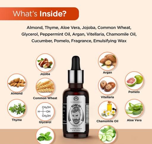 Product Name: The Man Company Beard Oil for Growing Beard Faster with Almond & Thyme, 100% Natural, Best Beard Growth Oil for Men, Nourishes & Strengthens Uneven Patchy Beard - 30ML