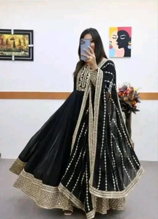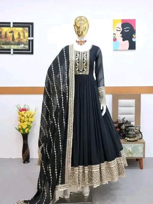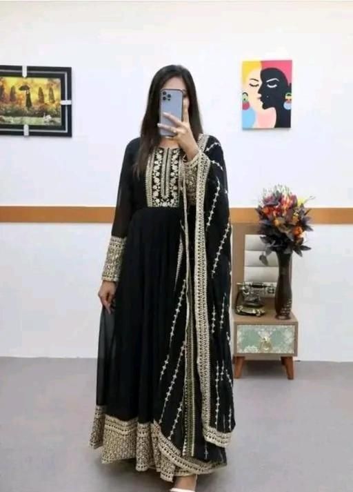 Name: Georgette Long Kurti With Dupatta (No Bottomwear) | Flower Print Kurti | Long Kurti with Dupatta | No Bottomwear Kurti | Floral Design Kurti | Stylish Kurti | Trendy Women's Kurti | Casual Kurti with Dupatta | Festive Wear Kurti | Gown for Women | Georgette Long Gown