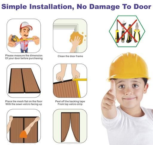 1. The magnetic fly door net size, Please measure your door frame before purchasing. 2. For uneven wood surfaces, please use supplied push pins to affix sticker strip. 3. If there is a gap after fixing screen, remove the screen, straighten it and fix it again. Hang it straight and do not pull it too tight. 4. Make sure the center of the top mesh slightly higher than two sides during installation. Please refer to the installation before you begin the installation