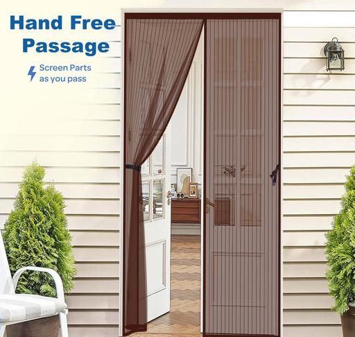 KARP Polyester Brown Magnetic Mosquito Net For Door With Buckle-90x210cm | Auto Closing Insect Screen for All Door Types | Door Mosquito Net | Mosquito Curtain | Mosquito Door Net | Mosquito Mesh