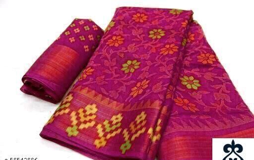 Name: Brasso Cotton Blend Pink Brocade Saree With Blouse
