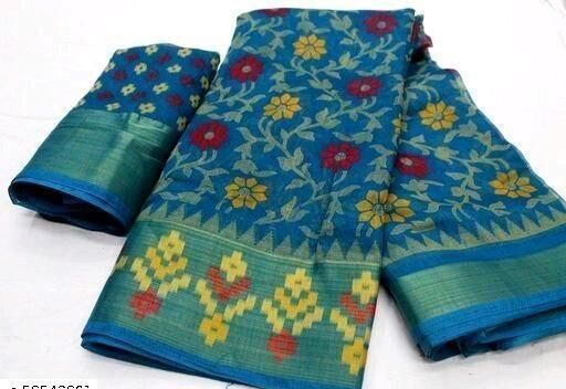 Name: Brasso Cotton Blend Blue Brocade Saree With Blouse