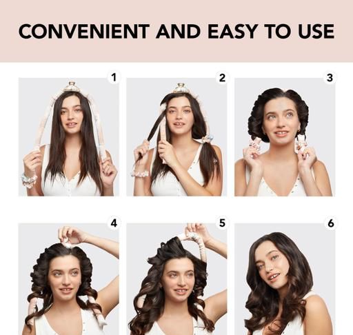 【How To Use】You Only Need To Divide Your Hair Into 2 Parts Then Wraps It Along The Curling Ribbon And Fix The End With Scrunchies. It Will Only Take You Few Minutes To Finish. And It's More Safe To Use, You Will Never Worry About Burning by The Heat Accidentally. You Will Get Beautiful Curls At The Nexts Morning And Won't Feel Discomfort While Sleeping.