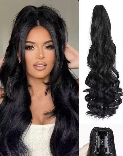 • Heat-resistant fibres, washable and reusable Synthetic Ponytail Hair Extension for Women | 24 Inch Long Curly Clip-On | Natural Black | High Volume Daily Use Wig