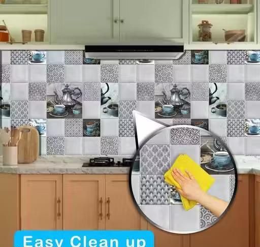 Free sizeKitchen Wallpaper is Easy to Apply - Just Peel & Stick! Applies to any Smooth. Surface. Our Stickers are made of a High Quality, Waterproof and Durable material, These Stickers will last long for up to 6-7 years. Wallpaper for kitchen wall | wall sticker for kitchen wall | kitchen tile wallpaper | Grey Kitchen wallpaper.