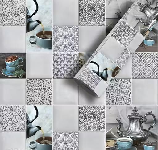 Buy 1 Get 3 Kitchen Wallpaper Pack Of 3 Wallpaper For Kitchen Wall | Cup Plate Wallpaper | Wall Sticker For Kitchen | WaterProof Oil Proof Wallpaper Grey Kitchen Wallpaper