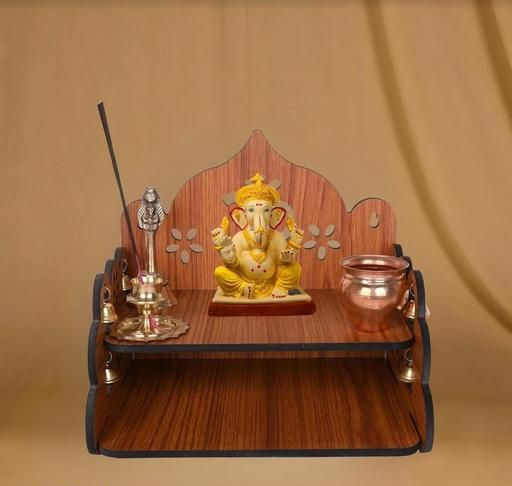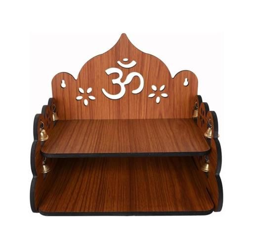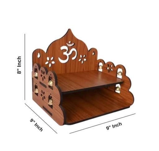 Featuring a beautifully cut OM design, side hanging brass bells, and two spacious shelves, it is perfect for placing idols, diya, incense, and puja essentials. The wall-mounted style saves space while adding a decorative and spiritual charm to your interiors.