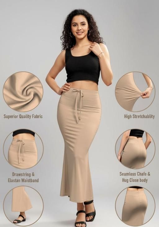 This Saree Silhouette is designed for hug close to your body and it allows the Saree to follow the figuration of your legs and gives you the perfect curvy look• DRAWSTRING & ELASTIC : It comes with a removable drawstring and high-Quality Elastic at waist round which will never be loose and hold the saree right exactly where you want• EASY MOVEMENT: The Mermaid/fishtail design has more circular fabric at the bottom, so, now you can walk very easily and you can feel comfortable even sitting cross-legged• Ideal to be worn under saree, lehenga, gown & long skirt• It Can Not Only Be Used For Saree But For Other Outfits Like Lehenga And Gowns As Well• Care Instructions: Hand Wash, Machine Wash.