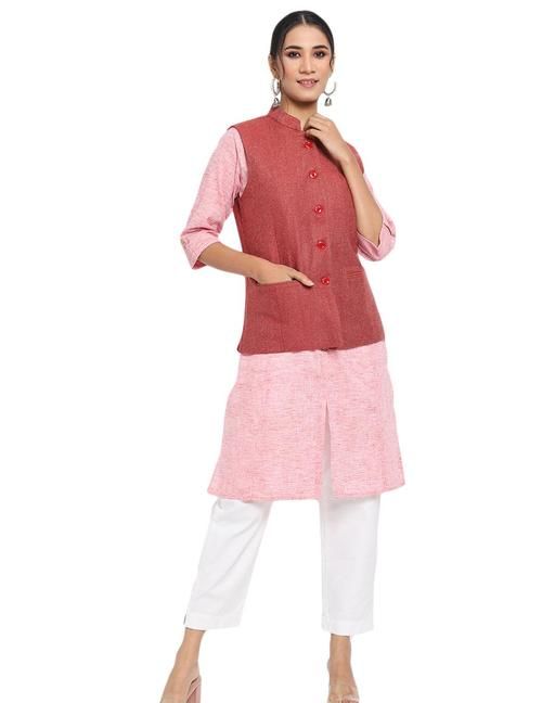 Name: Vastraa Fusion Women's Solid Nehru Jacket (Red)