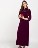 MEGH-NIGHT Womens and Girls Full Length Embroidery Velvet-Woolen Nighty For Winter-Nightdress-Sleep And Lounge wear-Grey