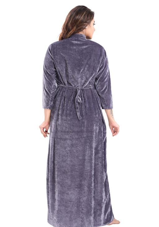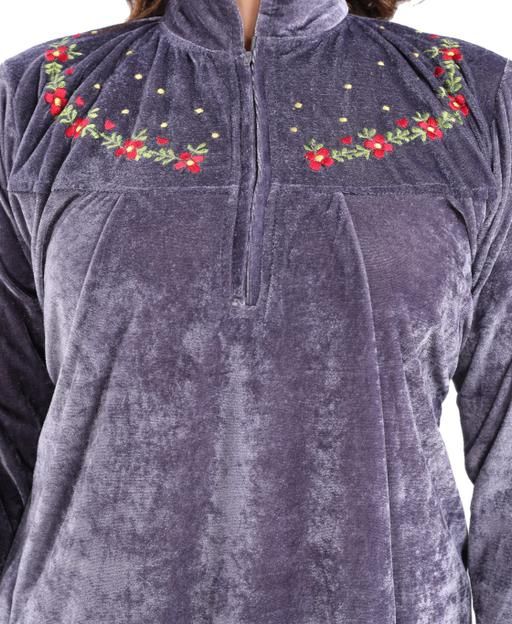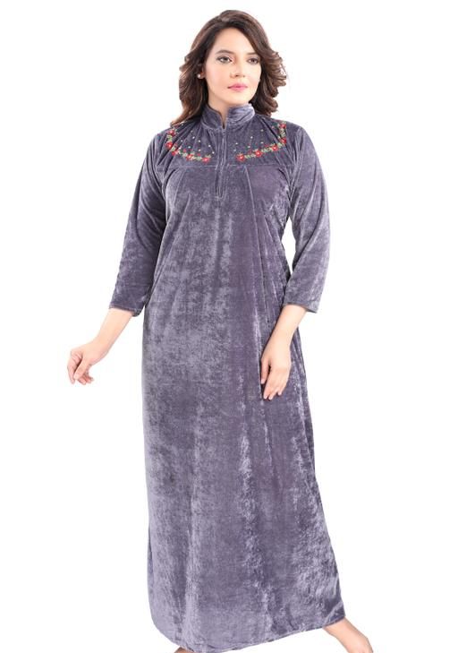 Name: MEGH-NIGHT Womens and Girls Full Length Embroidery Velvet-Woolen Nighty For Winter-Nightdress-Sleep And Lounge wear-Grey