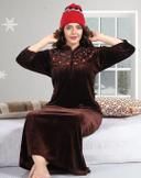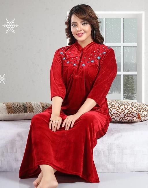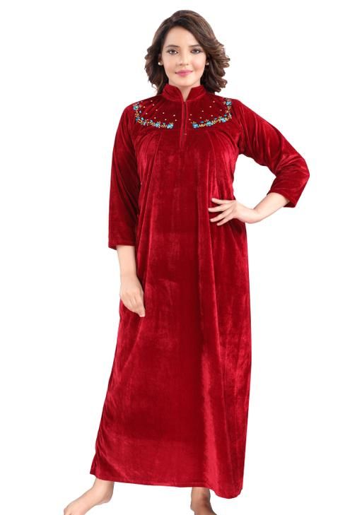 Name: MEGH-NIGHT Womens and Girls Full Length Embroidery Velvet-Woolen Nighty For Winter-Nightdress-Sleep And Lounge wear-Maroon