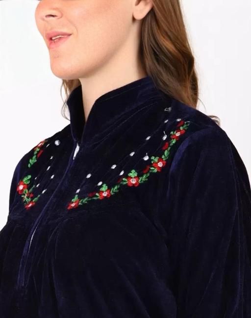 Name: MEGH-NIGHT Womens and Girls Full Length Embroidery Velvet-Woolen Nighty For Winter-Nightdress-Sleep And Lounge wear-Navy-Blue