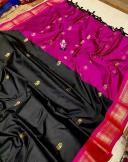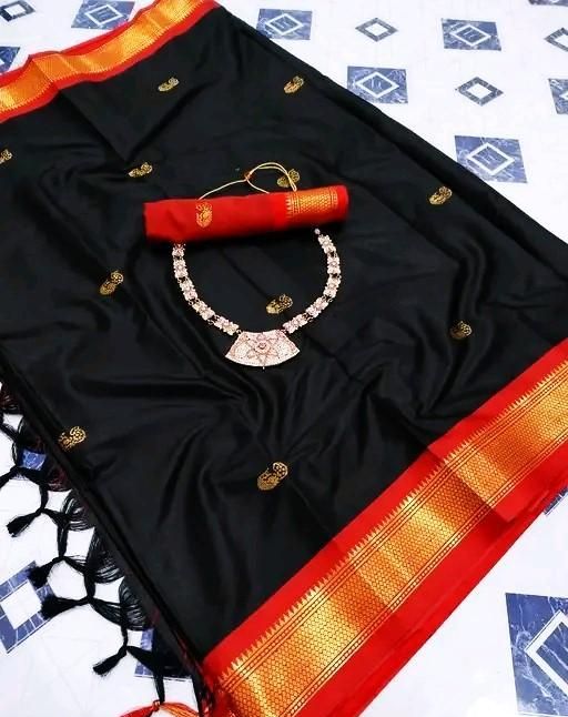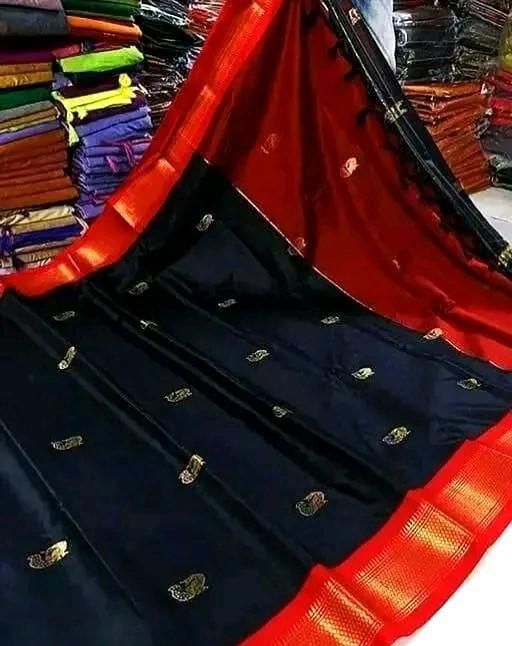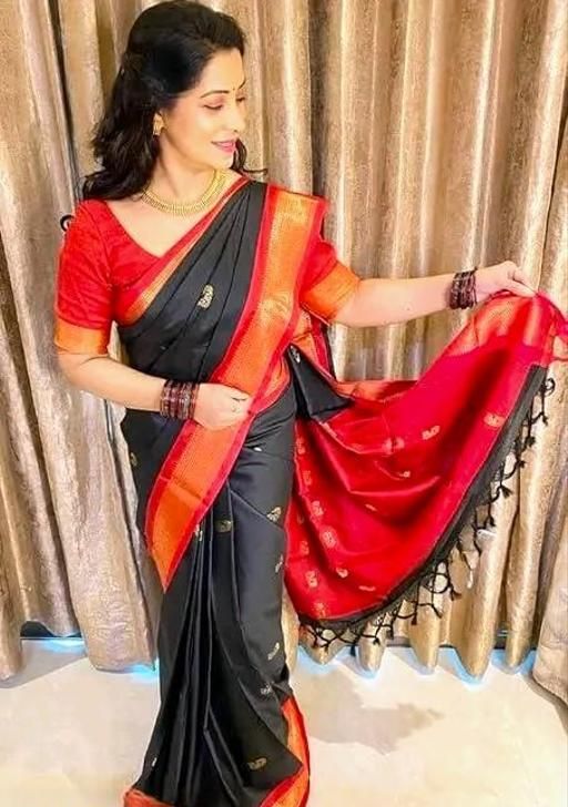 Saree//blak//sankarat//party wear// sico silk paithani Black Red p