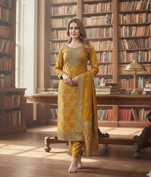 KANTUBA : Designer Art Silk Unstitched party wear suit for women latest design