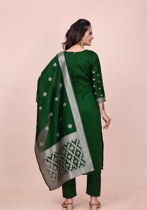 In this product suit fabric 2.20 meters bottom fabric 2.00 meters dupatta fabric 2.00 to 2.25 meters are provided This cloth is made from art silk fabric.