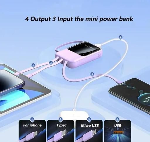 UAG URBN ARMOUR GEAR power bank comes with pocket compact size power bank with 15 layer protection and can easly carry and No need to take extra data cable becouse all type ports cable include in this power bank you can use this power bank with any smart phone and tablet. 15-watt pocket power bank typically refers to a portable charger that can deliver up to 15 watts of power output. This type of power bank is commonly used to charge smartphones, tablets, and other small electronic devices while on the go. The wattage rating indicates how quickly it can charge devices, with higher wattage generally meaning faster charging times, especially for devices that support faster charging standards like Qualcomm Quick Charge or USB Power Delivery. When choosing a pocket power bank, consider the following: Capacity: Measured in mAh (milliampere-hours), this determines how much charge the power bank can store. Higher mAh means more charges for your devices before needing to recharge the power bank itself. Ports: Check if it has the right ports for your devices (e.g., USB-A, USB-C) and if it supports fast charging protocols your devices might use. Size and Portability: Ensure it fits comfortably in your pocket or bag if portability is important to you. Always check compatibility with your devices to ensure optimal performance and safety when using a power bank