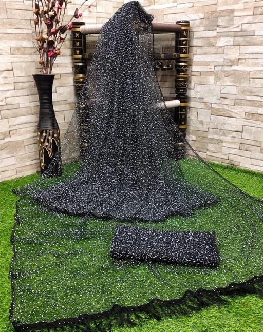 SAREE :- NET SAREE WITH RUBBER WORK AND BLOUSE SAME AS SAREE