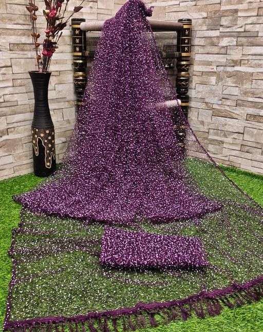 SAREE :- NET SAREE WITH RUBBER WORK AND BLOUSE SAME AS SAREE