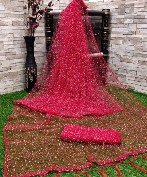 SAREE :- NET SAREE WITH RUBBER WORK AND BLOUSE SAME AS SAREE