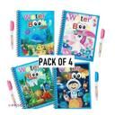Reusable Magic Water Book Quick-Dry Coloring Book with Magic Pen – Doodle and Painting Board for Children's Educational Drawing Pad (Assorted Colors & Random Designs, Pack of 4)