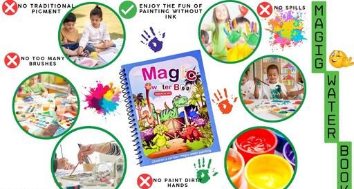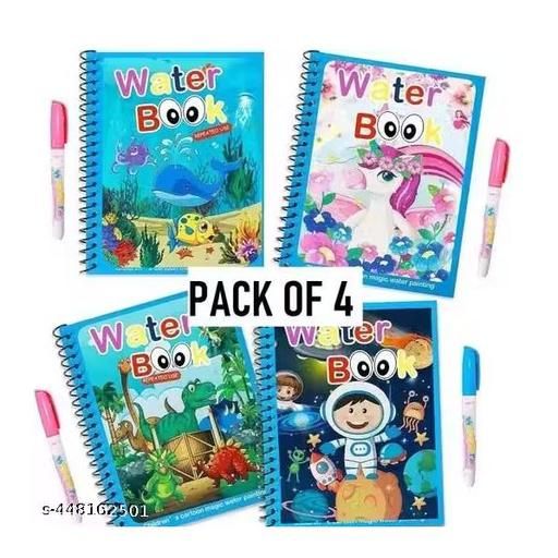 Name: Reusable Magic Water Book Quick-Dry Coloring Book with Magic Pen – Doodle and Painting Board for Children's Educational Drawing Pad (Assorted Colors & Random Designs, Pack of 4)