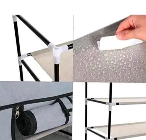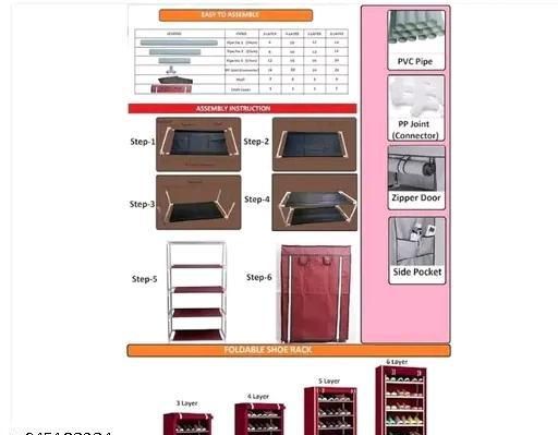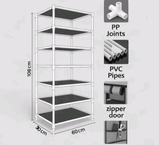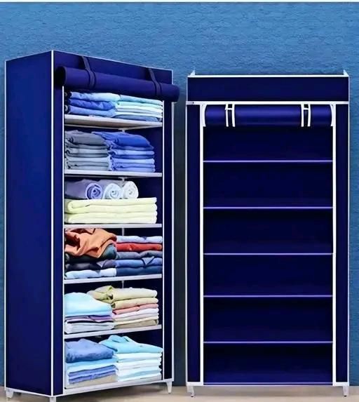 Name: HANUMAN ENTERPRISES 6 shelves shoe rack plastic with zip door cover & side pockets, multiuse storage rack for footwear, toys, clothes with dustproof cover (6 shelves, plastic) ( blue colour 6 layer)