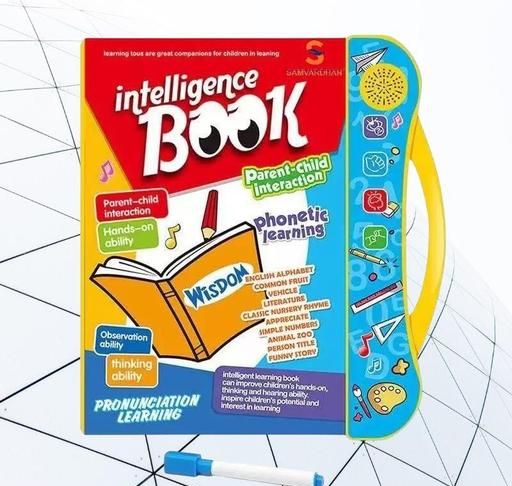 “Intelligence Book – Interactive Parent-Child Learning Book with Phonetic Pronunciation, English Alphabet, Numbers, Nursery Rhymes, Animals, Fruits, Vehicles, and Music for Early Childhood Education.”k