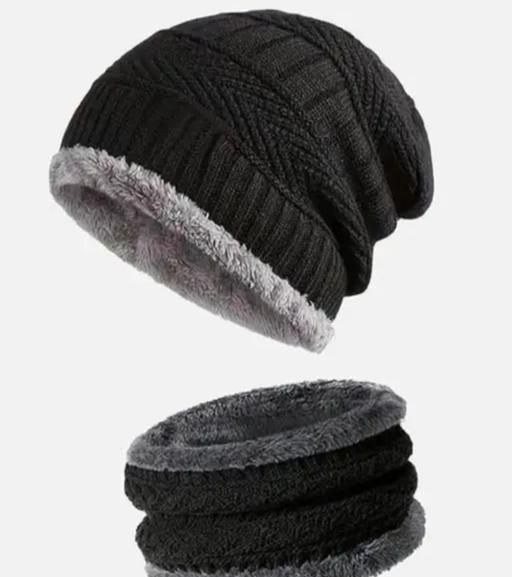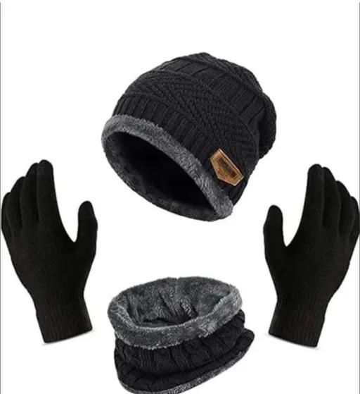 Unisex Woolen Premium Quality Beanie Cap with Neck Warmer-Scarf for Men Women Girl Boy Warm Snow Proof Soft Fur Winter Cap and Premium quality Woolen warm Gloves (1 Cap, 1 Neck Warmer and 1 Pair of Gloves) topa set