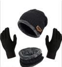 Name: Winter Knit Beanie Hat Neck Warmer Gloves Set 3 Pcs Fleece Lined Skull Cap for Men Women Black