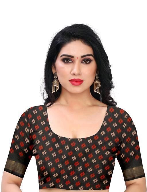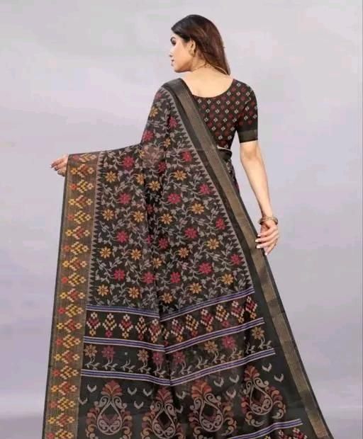 Name: attractive Brasso Printed Cotton Black Saree With Blouse with pallu, partywear, daily wear, casual wear