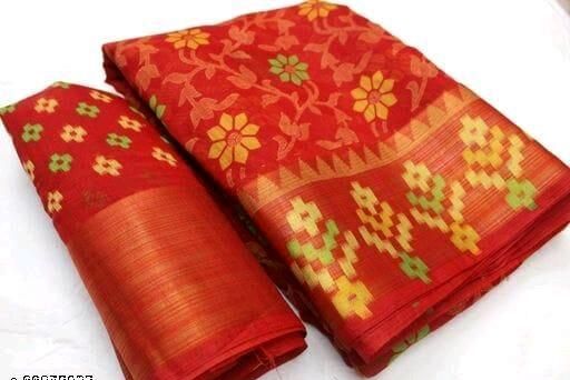 Name: Chanderi Chanderi Cotton Red Saree With Blouse