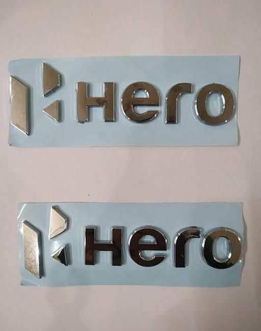 Name: Hero Tank 3D Logo Monogram for Hero Splendor, ABS Plastic, Silver/Chrome, Pack of 2