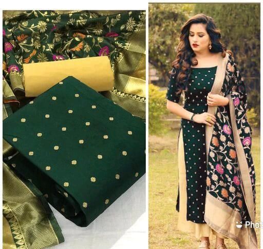 Name: Women's Green Ethnic Motif Embroidered Taffeta Silk Suits & Dress Materials