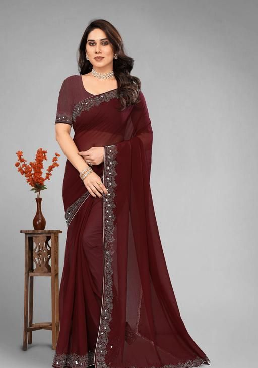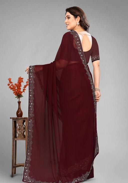 Name: MAROON Embellished Bollywood Georgette Saree
