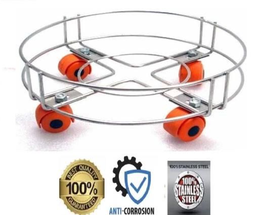 Name: AVROSPN Stainless Steel Gas Trolly/LPG Cylinder Stand Trolley with Wheels | Gas Cylinder Trolley with Wheels (Silver) Set Of 2