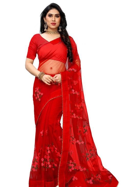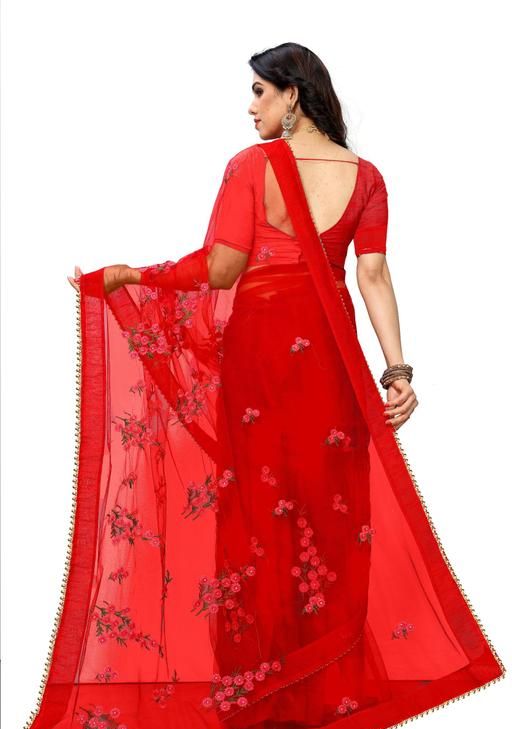 ** FABRIC ** : Saree - Net (Color - Red) || Blouse -Art Silk (Color -Red)