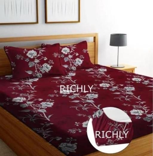 Attractive fitted double bedsheet with 2 large pillow covers.