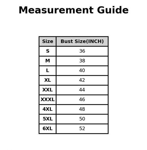 6XL (Bust Size: 52 in, Waist Size: 48 in, Length Size: 50 in)