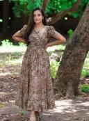 DIGITAL PRINTED HEAVY GEORGETTE GRAPHIC PRINT EXCLUSIVE SABYAS-SACHIS DESIGNER GOWN WORK ON NACK LINE DORI WITH APPLIQUE, FULL INNER LENGTH IS 52' INCHES.