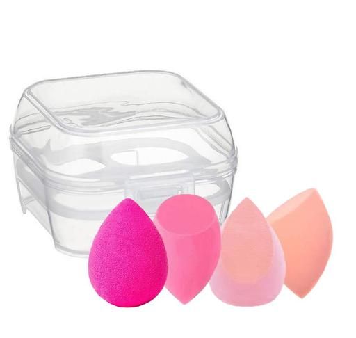 Product Name: GOLD MAX Makeup Beauty Blenders with Storage Box - Set of 4, (Transparent Box)