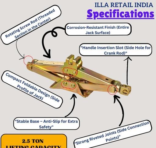 This Is A New Manual Scissor Jack Which Is Made Up Of New Super Quality Material Which Enhances The Way Of Your Using Scissor Jack And Provide Confidence To You. In This Order You Get 1 Unit Of Scissor Jack Along With Rod Of Golden Color. It Has A Capacity To Lift Vehicles Easily And Very Comfortable Way