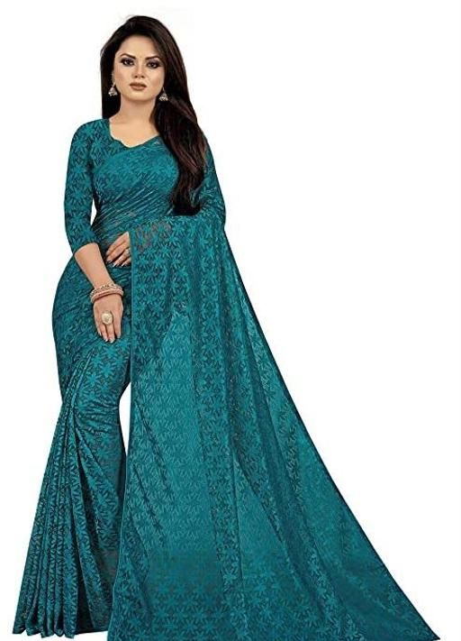 Brasso Net Teal Jacquard Saree with blouse