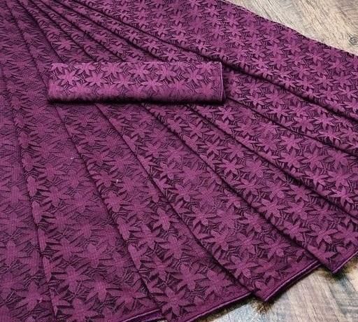 Brasso Net Purple Jacquard Saree with blouse