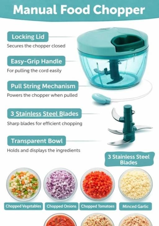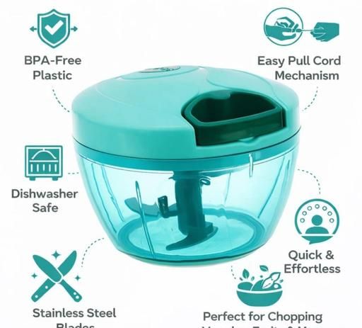 Designed for convenience, this chopper is easy to clean and maintain, making it suitable for busy kitchens. Its sturdy build ensures long-lasting , while the ergonomic top provides a comfortable grip during use. Perfect for home kitchens, hostels, and small households, this manual food chopper helps save time, reduces effort, and keeps your kitchen work neat and organized.