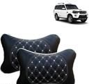 Car Seat Neck Rest Cushion Diamond Design Car Pillow Cushion / Neck Rest with Adjustable Strap For Scorpio (Rectangular, Pack of 2) (Black white)