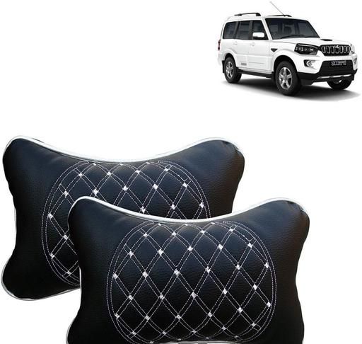 Name: Car Seat Neck Rest Cushion Diamond Design Car Pillow Cushion / Neck Rest with Adjustable Strap For Scorpio (Rectangular, Pack of 2) (Black white)