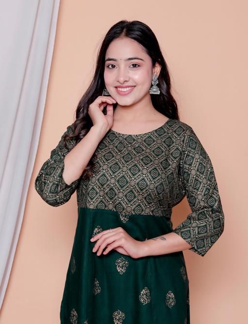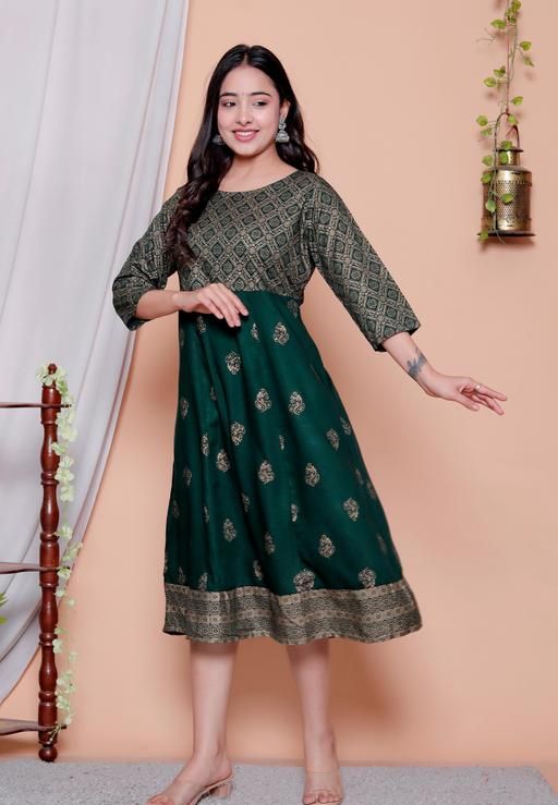 100% rayon fabric charming look with gold print