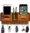Visu Crafts Wooden Key And Mobile Holder Alphabet M Wood Key Holder (6 Hooks, Brown)