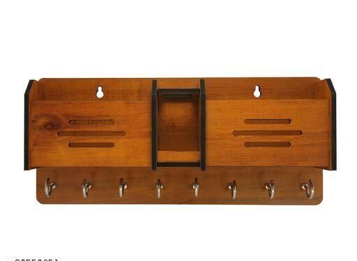 Name: Visu Crafts Wooden Key And Mobile Holder Alphabet N Wood Key Holder (6 Hooks, Brown)